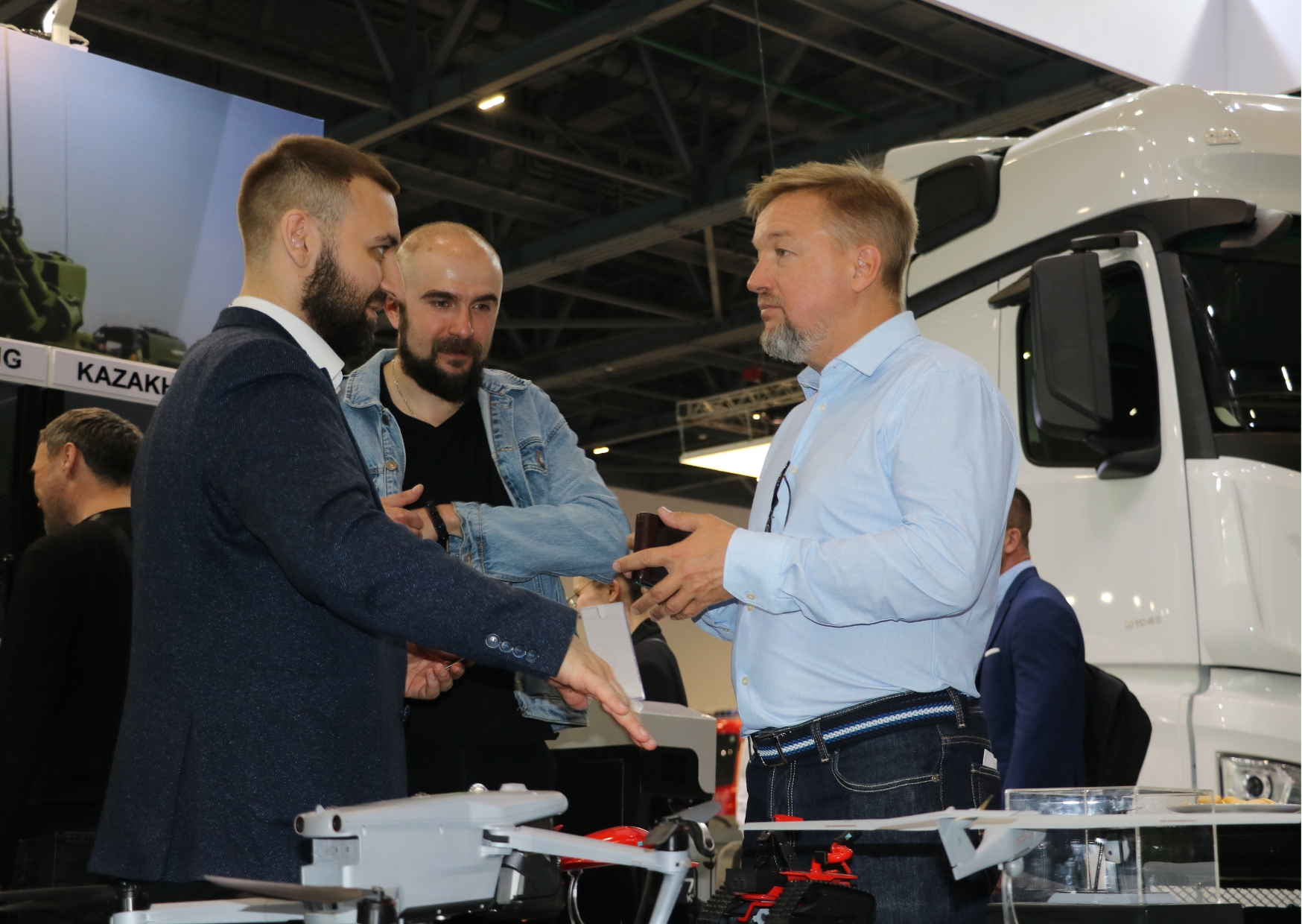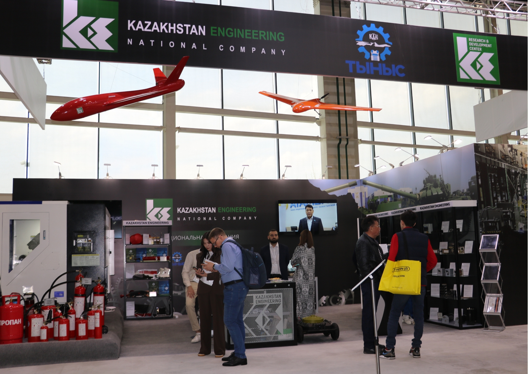 «Қазақстан инжиниринг» R&D орталығы» ЖШС өнімдері де келушілердің назарын аударды. Әзірлемелердің қатарында жылу имитаторлары мен турбореактивті қозғалтқыштары бар әуе нысаналары, «Қарақұс» квадрокоптері, «Жетісу» мобильді робототехникалық кешені, EVO Max 4T зияткерлік дрондары және басқалары болды.
